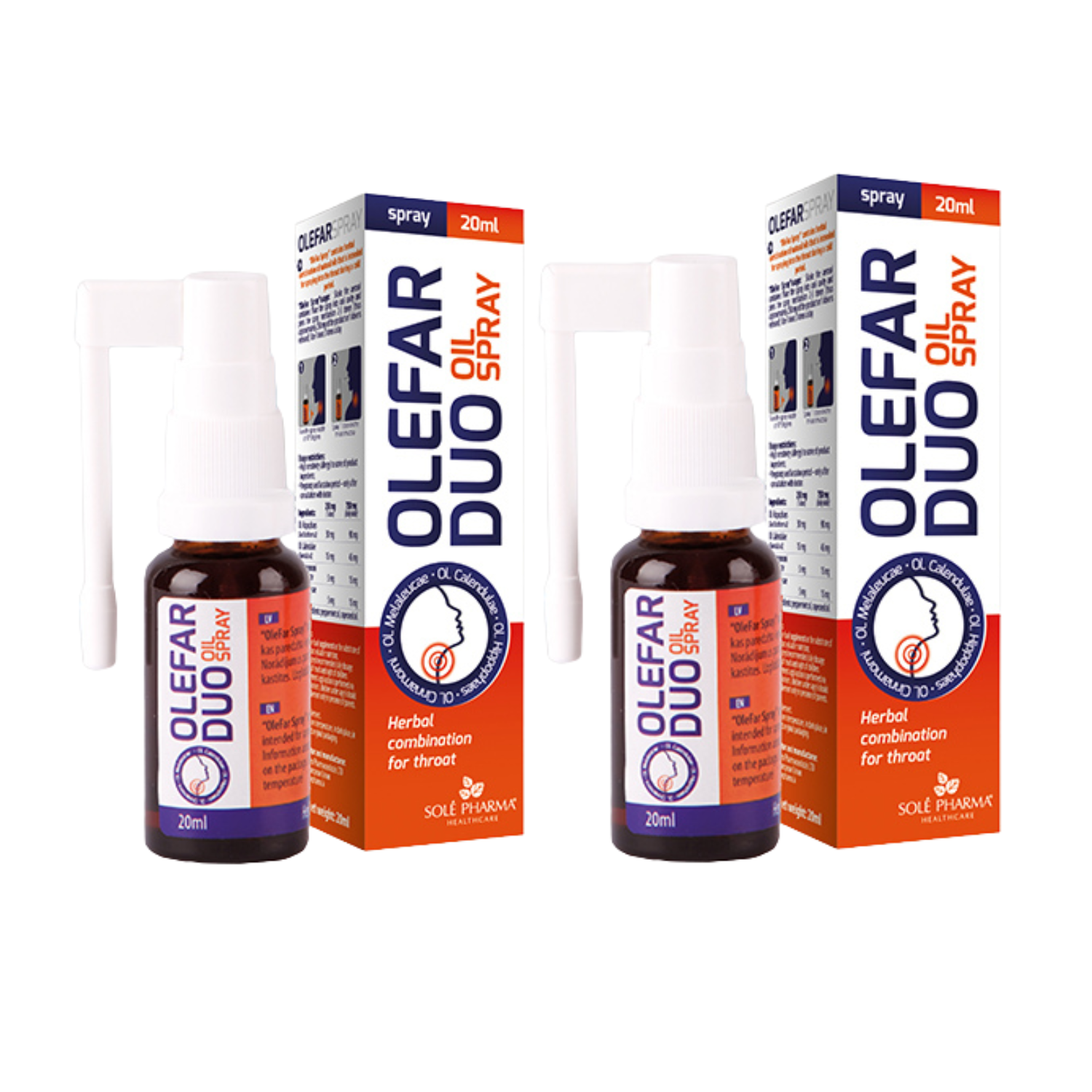 Olefar DUO Oil Spray purškiklio naudojimas sumažina įvairių manipuliacijų ar uždegimo sukeltą burnos ertmės ir ryklės gleivinės uždegimą.