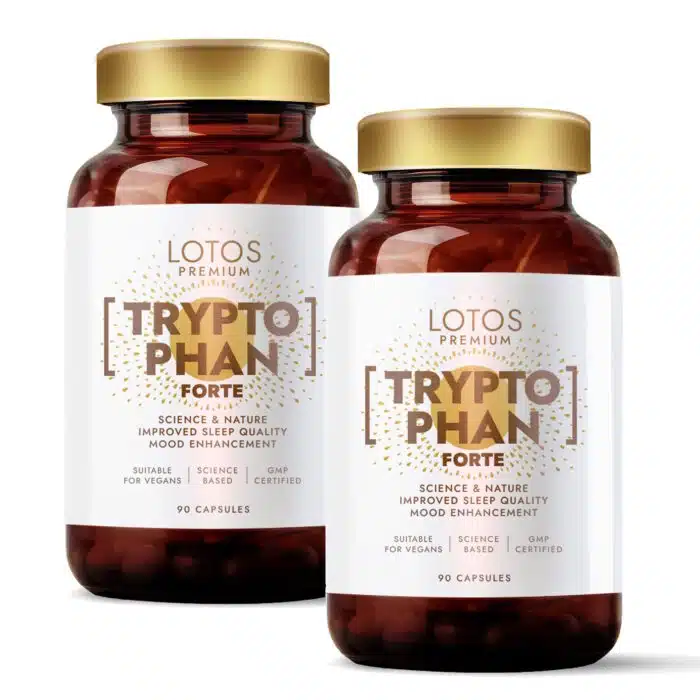 Maisto papildo LOTOS PREMIUM Tryptophan Forte sudėtyje yra L-triptofano ir ašvagandos (migdomosios vitanijos). Migdomoji vitanija padeda palaikyti normalią energijos apykaitą, normalią protinę ir pažinimo funkciją, normalų miegą, normalią širdies ir kraujagyslių sistemos funkciją, normalią psichologinę funkciją bei padeda atsipalaiduoti.