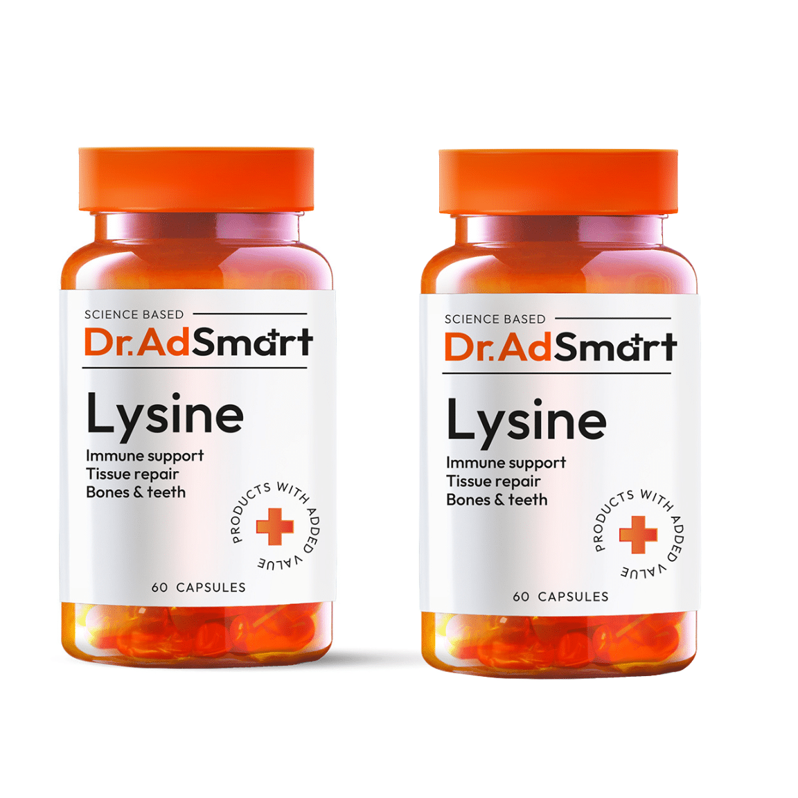 Maisto papildas. Dr.AD Smart Lysine vienoje kapsulėje yra 500 mg L-lizino hidrochlorido.
