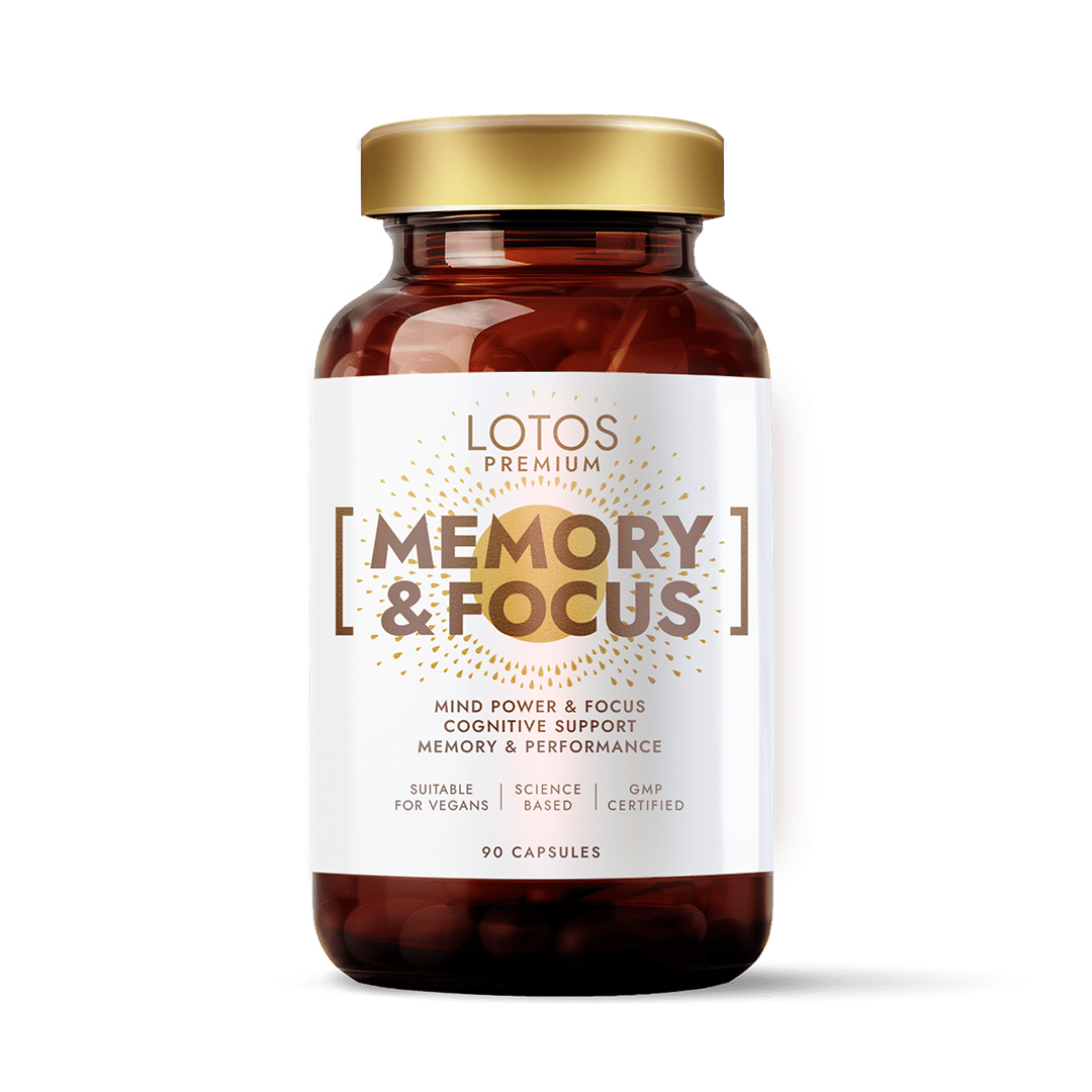 Maisto papildo LOTOS PREMIUM Memory & Focus sudėtyje esantis dviskiaučių ginkmedžių (Ginkgo biloba) lapų ekstraktas padeda palaikyti normalią pažinimo funkciją ir normalią širdies ir kraujagyslių sistemos veiklą. Migdomoji vitanija/ašvaganda padeda palaikyti normalią nervų sistemos veiklą ir normalią psichologinę funkciją, normalią protinę ir pažinimo funkciją. Ašvagandos šaknys padeda palaikyti normalią energijos apykaitą. Riboflavinas, vitaminas B6 ir B12 padeda palaikyti normalią energijos apykaitą, normalią nervų sistemos veiklą ir padeda mažinti pavargimo jausmą ir nuovargį. Vitaminas B6 ir B12 padeda palaikyti normalią psichologinę funkciją.